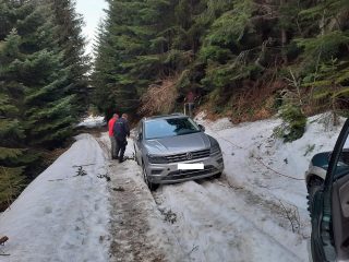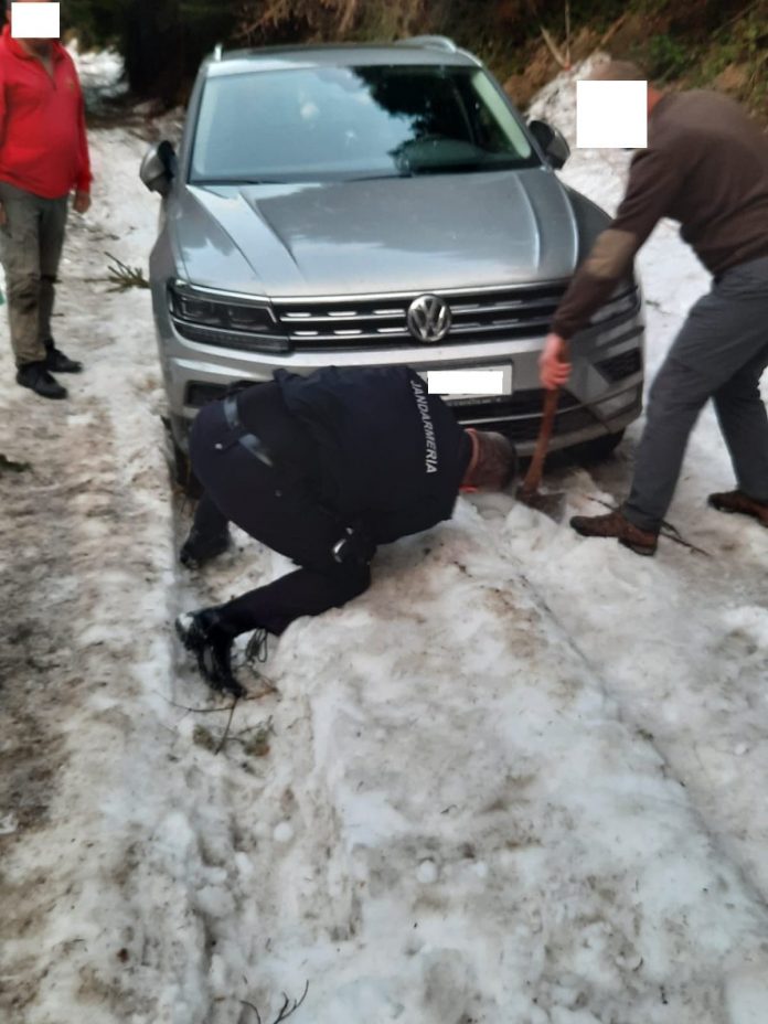 Maşină blocată pe Sohodol, intervenţie a jandarmilor montani!