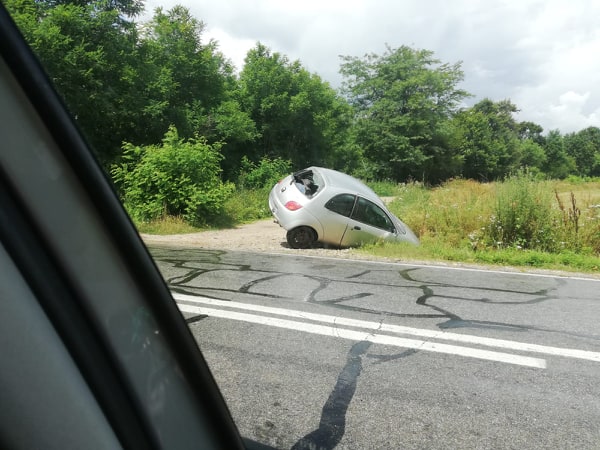 Un autoturism a ajuns în afara părții carosabile, pe raza comunei Peștișani. Mașina s-a oprit într-un șanț la marginea drumului, autoturismul fiind lăsat la locul accidentului, în cursul zilei de ieri, trecătorii privind uimiți autovehiculul care părea abandonat cu luneta spartă.