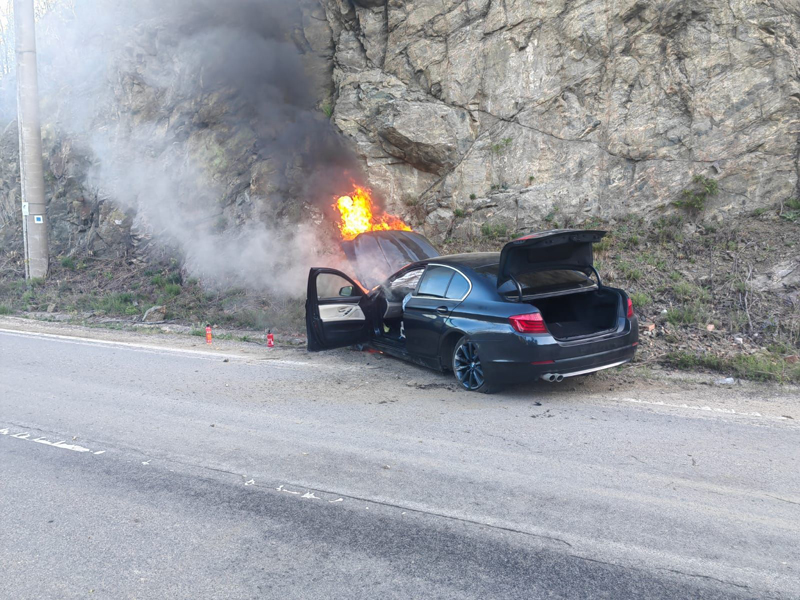 Incendiu uriaș produs ieri dimineață pe drumul național ce trece prin Clisura Dunării, mașina unei gorjence arzând complet în câteva minute.
