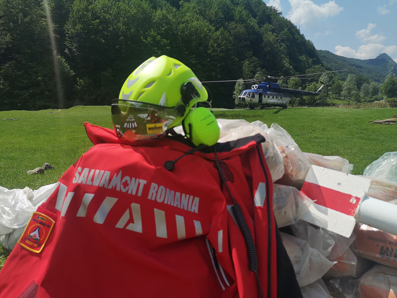 Materiale pentru refacerea traseelor turistice au sosit în Gorj cu un elicopter MAI-IGAv