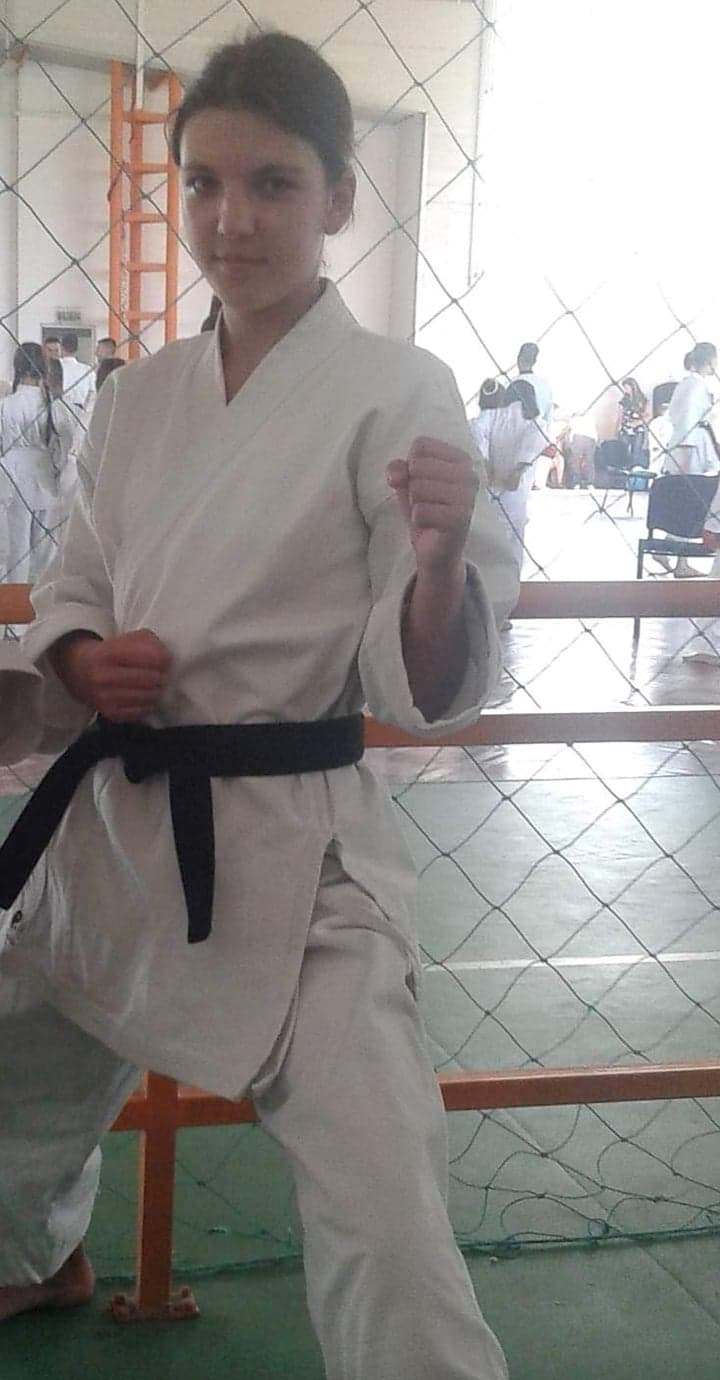 Pasionată de karate, tânăra practică acest sport încă de la vârsta de 7 ani. „Am 18 ani, sunt elevă în clasa a XII-a la Liceul Tehnologic Țicleni. Pasiunea mea este și a fost dintotdeauna karatele. Când m-am apucat de karate aveam 7 ani, eram în clasa I. Eram foarte curioasă să văd şi eu ce este karatele și, din curiozitate, am mers o dată, iar ulterior a început să îmi placă și am continuat să merg la aceste cursuri. Primul meu examen la karate a fost examenul pentru prima centură, centura albă. Am luat examenul cu brio, atunci am luat şi prima mea diplomă. Apoi au urmat concursurile. Unul dintre ele a fost Campionatul European din Italia, la care m-am calificat pe locul I.