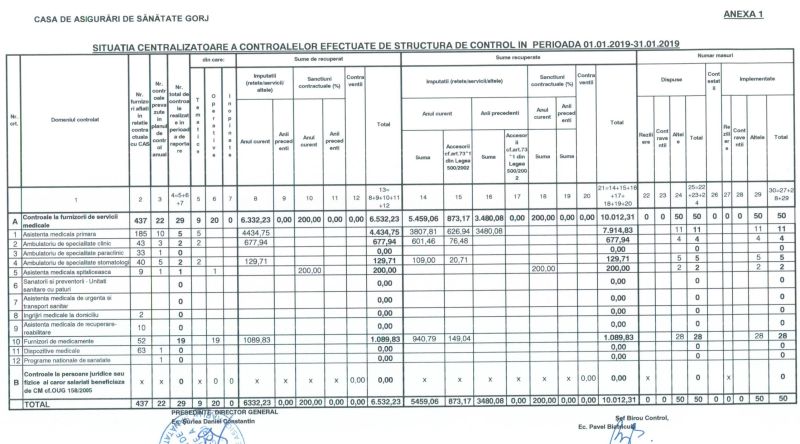 ,,Printre deficiențele constatate s-au regăsit: necompletarea cu toate datele a documentelor de evidență, neeliberarea scrisorii medicale, neeliberarea prescripției medicale în situațiile în care se impunea acest lucru”, a precizat Daniel Șurlea, președintele CJAS Gorj. În urma celor 29 de verificări, inspectorii Biroului Control al CJAS Gorj au imputat, în luna ianuarie, peste 6500 de lei. Ca să evite penalitățile sau întreruperea contractelor, unitățile spitalicești, medicii de familie, dar și furnizorii de medicamente au început să returneze din sumele imputate.