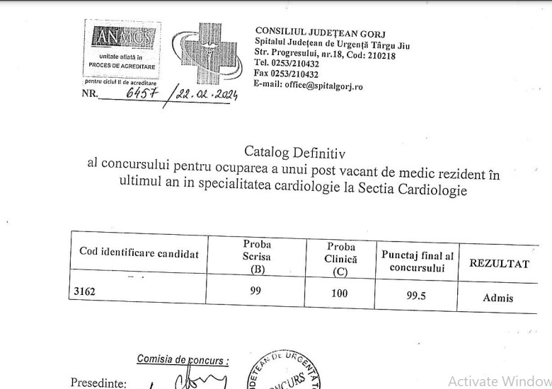 Spitalul Județean de Urgență din Târgu Jiu a reușit să atragă noi medici. Un medic rezident în ultimul, în specializarea Cardiologie, și un medic specialist în Anestezie și Terapie Intensivă au promovat cu succes concursurile organizate de spital.