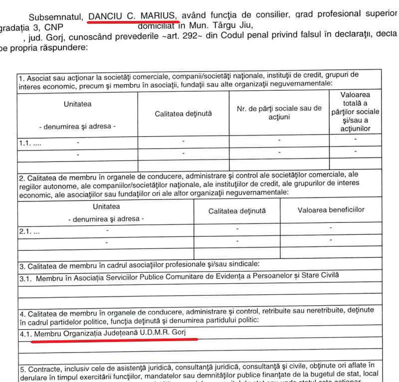 Inițial, PSD l-a scos la înaintare pe primarul Ion Bârcă, cunoscut ca megafonul unei facțiuni din partid, cu atacuri contrare unei logici elementare, la adresa inspectorului șef al ITM Gorj, George Romanescu. Numai că ecourile megafonului s-au stins și lucrurile au rămas neschimbate. Ulterior, dinspre PNL a apărut, pentru prima oară, concret, numele lui Marius Danciu, care se voia inspector șef adjunct al ITM Gorj, fără concurs și cu dezlegarea președintelui UDMR, Kelemen Hunor. Danciu a avut calitatea de membru UDMR, potrivit declarației de interese de anul trecut, însă e posibil să se fi reorientat politic având în vedere interesul uriaș al liberalilor pentru poziții în conducerea ITM Gorj, la împărțeala serviciilor deconcentrate.
