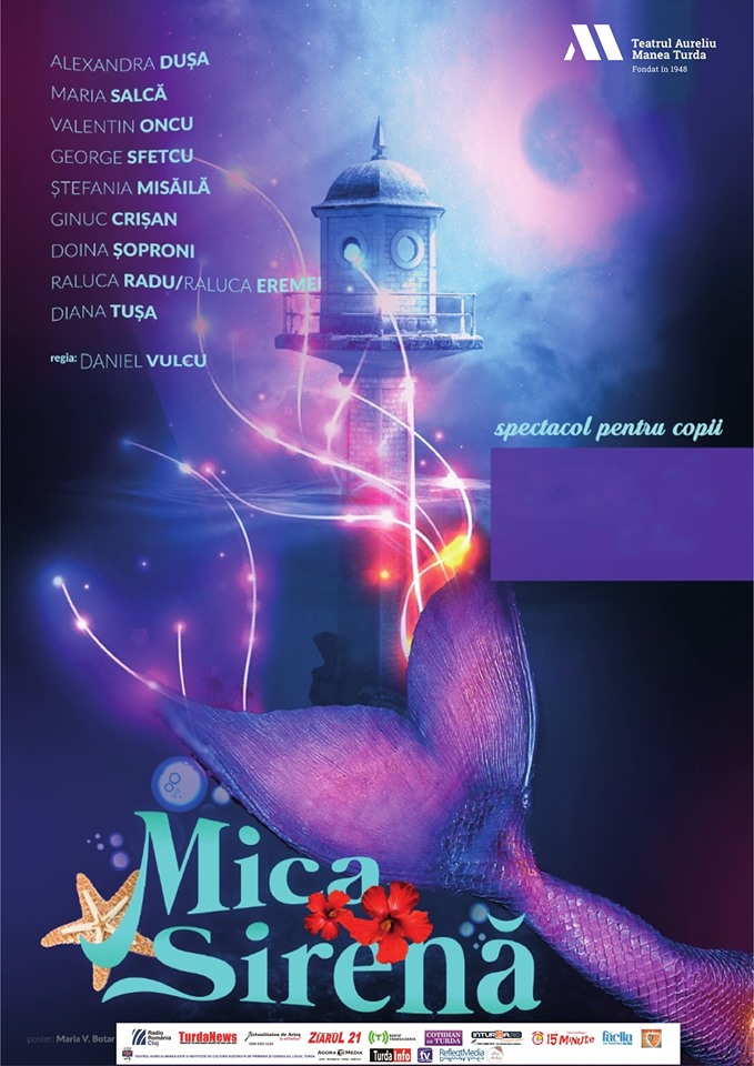 Micuţii sunt aşteptaţi, duminică, la un spectacol musical, începând cu ora 12.00, la Teatrul Dramatic ,,Elvira Godeanu”. Aceştia vor putea vedea Mica Sirenă, în regia lui Daniel Vulcu, adaptare după H.C. Andersen. Spectacolul este o produţie a Teatrului „Aureliu Manea” Turda, scenografia – Oana Cernea, muzica – Dorin Griguță. Din distribuţie vor face parte: Alexandra Dușa, George Sfetcu, Valentin Oncu, Doina Șoproni, Maria Salcă, Raluca Radu/Raluca Eremei, Ginuc Crișan. Preţul unui bilet este de 15 lei.