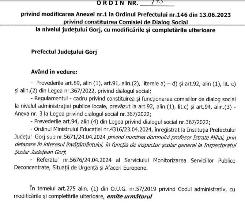 ,,Numirea mea a survenit ca urmare a demisiei doamnei Mrejeru. Mi-a fost cerut acordul pentru detașare, ca urmare, am și semnat acordul cu data de marți, 23 aprilie, când am fost numit în această funcție. Este un ordin al ministrului Educației”, a declarat noul ,,general” de ISJ Gorj.