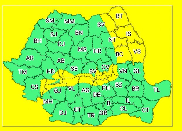 Meteorologii ANM au emis o avertizare meteo Cod galben de vijelii puternice, care vizează 21 de județe ale țării. Avertizarea meteo Cod galben este valabilă în intervalul 14 februarie, ora 08:00 – 15 februarie, ora 02:00.