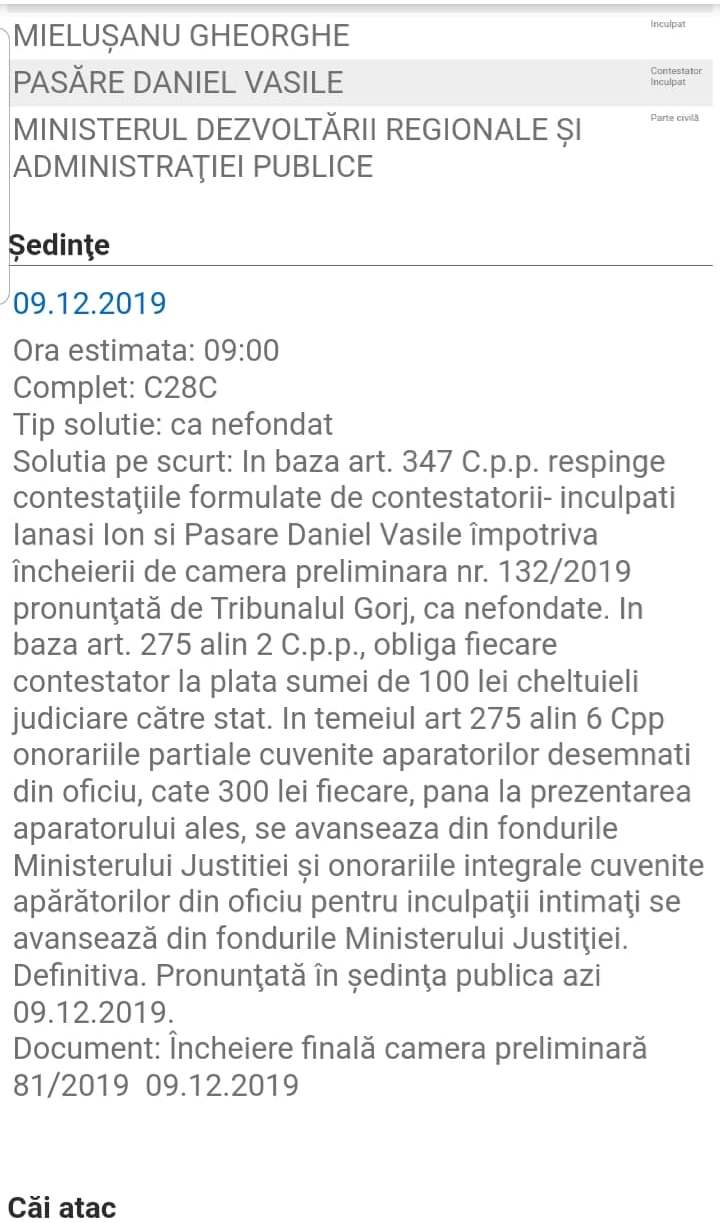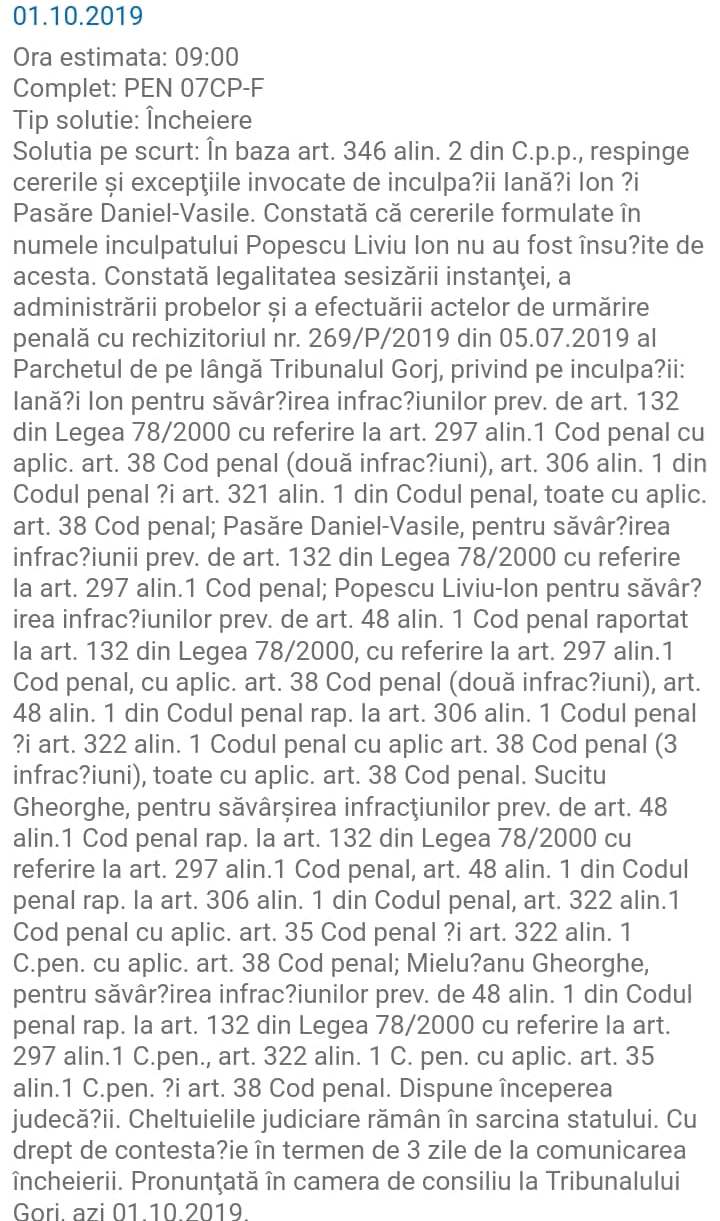 La începutul lunii octombrie o instanță a Curții de Apel Craiova a considerat că procurorii au făcut un rechizitoriu ca la carte în acest dosar, decizând, fără cale de atac, începerea judecății.