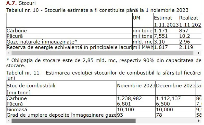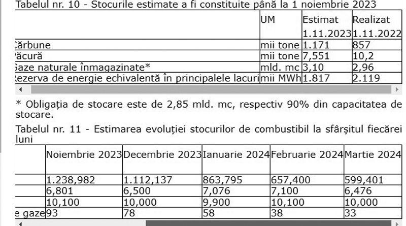 Dar iată ce se spune în Hotărârea de Guvern din 22 septembrie 2023 (HOTĂRÂRE nr. 877 din 20 septembrie 2023pentru aprobarea măsurilor privind nivelul de siguranță și securitate în funcționare a Sistemului electroenergetic național, precum și a măsurilor în legătură cu realizarea stocurilor de siguranță ale acestui sistem în ceea ce privește combustibilii și volumul de apă din lacurile de acumulare pentru perioada 1 noiembrie 2023-31 martie 2024