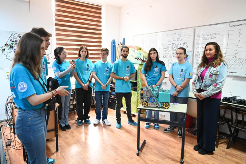 Echipa de robotică Tea-Borgs a Colegiului Național ”Tudor Vladimirescu” a fost vizitată de ministrul Familiei, Tineretului și Egalității de Șanse, Natalia Intotero.