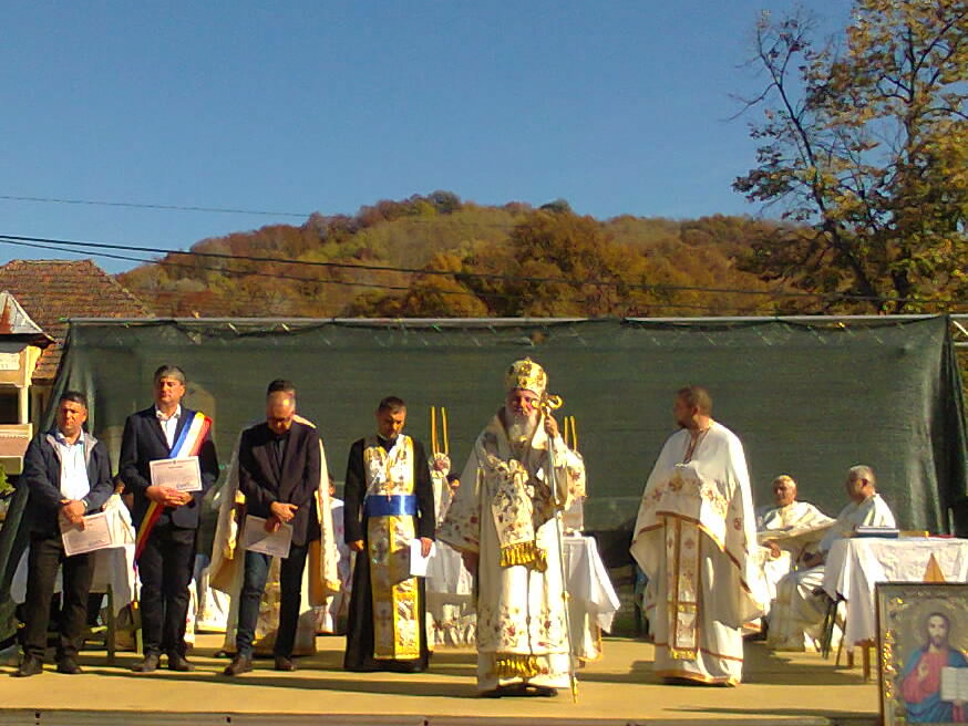 izgonitoare tuturor duhurilor necurate care se abat de multe ori asupra noastră chiar vizibil, prin oameni făcători de rele, prin oameni îndrăciţi, prin oameni care nu cunosc adevărul şi care caută prin toate mijloacele ca să facă rău celorlalţi! Deci, împotriva acestora, biserica se roagă şi ne învaţă să zicem: «şi ne izbăveşte de cel viclean!». Sfânta Biserică este această «Casă» a Lui Dumnezeu, acest loc sfânt şi binecuvântat unde primim cu toţii ceea ce avem nevoie pentru viaţa noastră! De este cineva bolnav, cu multe greutăţi, când vine şi se roagă în biserică, va primi un răspuns negreşit de la Dumnezeu! Că ne spune psalmistul: «oare, cine a sădit urechea nu aude, oare, cel care a zidit ochiul, nu priveşte?», pentru că Dumnezeu este acela care a creat şi urechile noastre, şi ochii noştri, simţurile noastre, pentru că El ne priveşte şi ne aude în modul cel mai categoric! Noi nu suntem străini de Dumnezeu şi am fost aduşi pe pământ prin voinţă divină! Tatăl cel cresc ne-a rânduit înainte de Creaţia lumii, în Planul Său cel veşnic, pentru că nu venim la întâmplare pe faţa pământului! Nici nu trăim întâmplător aici, suntem rânduiţi de Dumnezeu, suntem ocrotiţi de Dumnezeu şi ne vom întoarece iar la Dumnezeu! Se spune la Sfânta Scriptură: «Aşezat-a Milostivul în sufletul nostru care este suflare dumnezeiască», iar, sufletul nu se risipeşte niciodată, nu putrezeşte, el rămâne permanent, chiar dacă trupul nostru într-o zi va fi îngropat şi se va descompune în pământul din care a fost alcătuit! Dar, prin grija dumnezeiască, la venirea Mântuitorului Iisus Hristos, adică, la Înfricoşata judecată, toţi vom învia şi ne vom uni cu trupurile din pământ ca să ne înfăţişăm înaintea Dreptului Judecător ca să primim răsplată pentru faptele noastre! Cei care au făcut fapte bune, spre viaţa veşnică, iar cei care au făcut fapte rele, spre osândă veşnică! Aşadar, această biserică este ca o făclie care a fost pusă în sfeşnic, că nimeni nu aprinde făclia ca să o pună «sub pat», cum spune Sfânta Evanghelie, ci, o pune ca să lumineze tuturor, că se pune cetatea în vârf de munte ca să fie vizibilă tuturor! Biserica de astăzi este strălucitoare, este luminoasă, pentru că este sfinţită şi locuită de Însuşi Dumnezeu! În biserică venim ca în Casa Tatălui ceresc, iar, El, Care este Părintele nostru, ne aşează şi pe noi ca să fim purtători de lumină. Aşa cum o lumânare «împărtăşeşte» unei alte lumânări din lumina ei, când se aprind multe lumini dintr-o singură lumânare, la fel şi noi ne aprindem de Lumina Mântuitorului Iisus Hristos, când ne apropiem de El, când venim la biserică unde suntem cuprinşi de «mireasma» dumnezeiască”, deci, o mireasmă îmbietoare şi plăcută, mai ales că din cuvântul de învăţătură al Mitropolitului Olteniei putem înţelege multe lucruri privitoare la faptul că Dumnezeu, Atotțiitorul, Făcătorul cerului și al pământului, văzutelor tuturor și nevăzutelor, a creat toate din prinosul bunătății Sale milostive, potrivit cu folosul celor pentru care avea să o facă prin zidirea bisericilor. Dumnezeu, Atoateştiitorul, cunoaşte ceea ce El a crezut că îi e omului de folos și cunoscând aceasta, a purces cu multă grijă și măsură, făcând ceea ce îi dădea omului putința să locuiască, să trăiască și să viețuiască în biserică, deci, privind la nevoile lui și la o bucurie pe măsura vieţii lui pământeşti, pentru că în ultima instanţă: «Și a privit Dumnezeu toate câte a făcut și iată erau bune foarte» (Facere 1, 31). Iar, dacă primii oameni trăiau în comuniune cu Dumnezeu, în fericire desăvârșită, necunoscând nici un fel de lipsă sau durere, având calea deschisă spre nemurire, prin căderea în păcat se rupe comuniunea dintre om și Dumnezeu, ființa omenească se alterează și prin ea întreaga natură, deoarece Dumnezeu îi spune lui Adam: „Pentru că ai ascultat vorba femeii tale și ai mâncat din pomul din care ți-am poruncit să nu mănânci, blestemat va fi pământul pentru tine! Cu osteneală să te hrănești din el în toate zilele vieții tale! Spini și pălămidă, îți va rodi el și te vei hrăni cu iarba câmpului! În sudoarea feței tale, îți vei mânca pâinea ta, până te vei întoarce în pământul din care ești luat; căci pământ ești și în pământ te vei întoarce” (Facere 3, 17-19). Dar, Înaltpreasfinţite Părinte Mitropolit dr. Irineu, căderea în păcat aduce azi îndepărtarea omului de Dumnezeu, cât și îndepărtarea omului de om, de semenii săi, iar, biserica sfinţită are tocmai acest rol de a aduce la un loc sfânt credincioşii, dincolo de cei care seamănă neîncredere, ură și războaie între oameni și popoare. Cu cât va trece timpul, din păcate, nenorocirea lumii crește, omenirea fiind înconjurată de întunericul rătăcirii și de umbra morții. La plinirea vremii, vom putea înţelege că Arhieria voastră ne apropie de Dumnezeu, Cel Care este izvorul dragostei și al luminii, când va trimite în lume pe singurul său Fiu ca să salveze întreaga și neputincioasa omenire din robia celui rău şi îndrăcit: «Căci Dumnezeu așa a iubit lumea, încât pe Fiul Său Cel Unul-Născut L-a dat ca oricine crede în El să nu piară, ci să aibă viață veșnică» (Ioan 3, 16). Deci, iată, şi la resfinţirea Bisericii de la Glogova, am înţeles că prin întruparea Fiului lui Dumnezeu de la Duhul Sfânt și din Fecioara Maria, a răsărit pentru întreaga lume soarele dreptății și al dragostei, fiindcă Hristos Domnul săvârșește restaurarea întregii Creații, a omului care este cununa Creaţiei Sale!