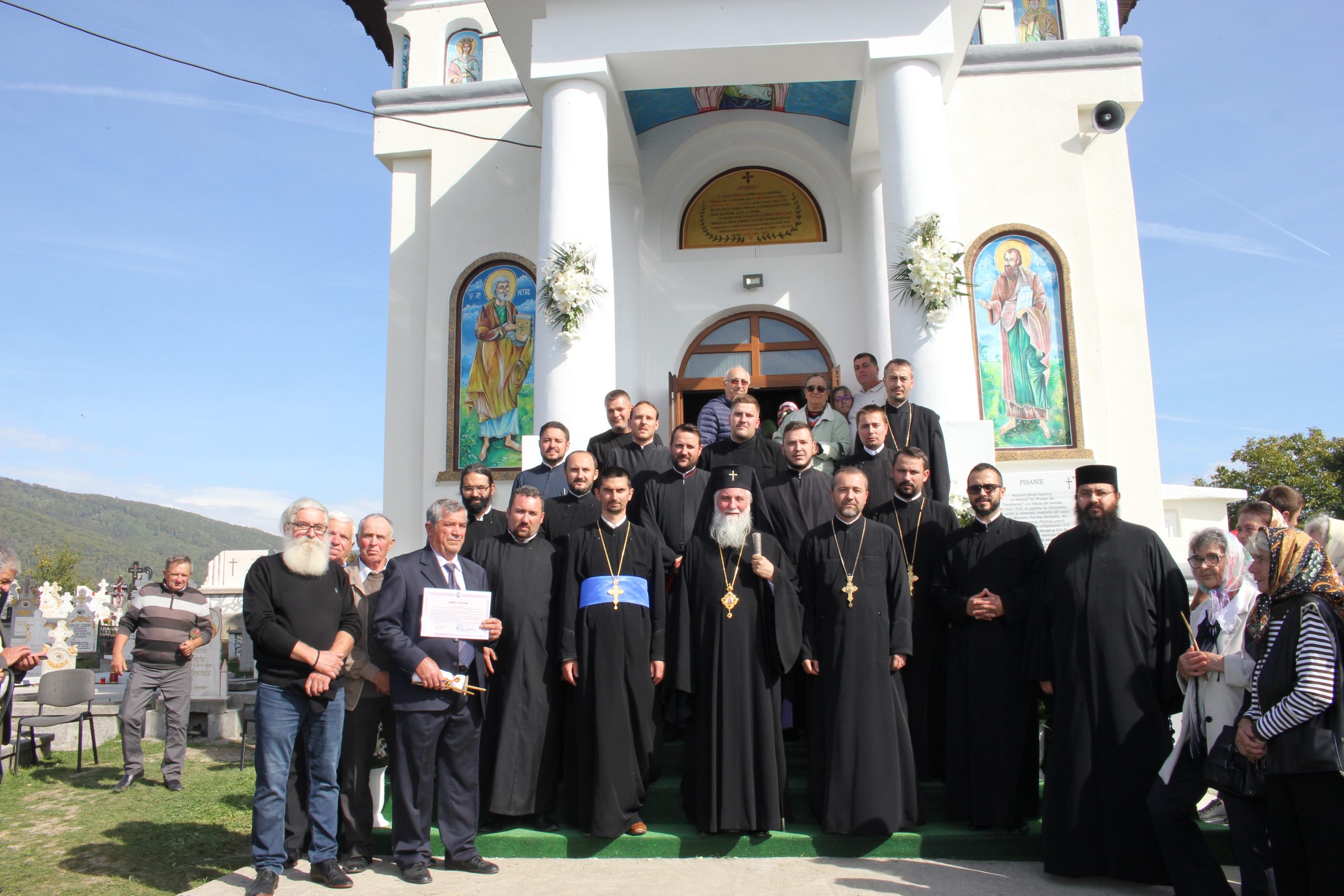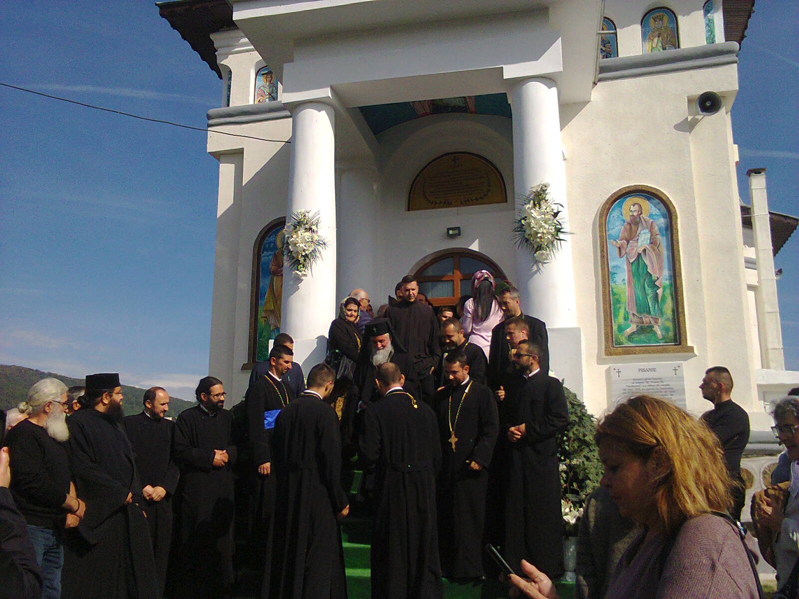 El a Înviat din morţi! Toate celelalte învieri sunt premergătoare şi ne arată cum va învia, făcându-se începătură celor adormiţi! Faptul că Mântuitorul Hristos a înviat din morţi, ne certifică, ne adevereşte că şi noi vom învia! El ne va învia şi pe noi, pentru ca să luăm răsplată pentru faptele noastre până la sfârşitul vieţii, până la sfârşitul lumii, când El va veni cu Slavă ca să judece viii şi morţii, a cărui Împărăţie nu va avea sfârşit! Aceste cuvinte le avem în «Crezul» nostru! Astfel, noi mărturisim toate faptele bune pe care le-a făcut Dumnezeu pentru noi, inclusiv învierea! Deci, la sfârşitul lumii, vom învia, când Dumnezeu doreşte să realcătuiască întocmai chipul nostru! Deci, refacerea, astfel ca împreună cu sufletul să fie şi trupul! Deci, acest trup muritor din groapă se va reface, dar, nu ca un trup stricăcios, cum este al nostru, plin de boală şi suferinţă, ci, va fi un trup preamărit, aşa cum este şi trupul Domnului! Deci, Mântuitorul Hristos înviază cu puterea Sa şi ne arată că nu mai este supus nici zidurilor şi nici mâncării! El Însuşi este deasupra tuturor, aşa cum vom fi şi noi la sfârşitul veacurilor, aşa cum ne spune şi Sf. Ap Pavel: «Se seamănă întru stricăciune, adică, aşa cum suntem, dar, înviază întru Slavă!» (Capit. 15 Corinteni). Aşadar, se seamănă trup pământesc şi înviază trup ceresc! Este imaginea pe care Evanghelia ne-o dă atât de complex, atât de profund pentru înţelegerea noastră, că Mântuitorul Hristos a venit în lume ca să mântuiască pe cei păcătoşi, aşa cum suntem noi! Ultima parte a Evangheliei de astăzi este o exclamaţie: «Cu adevărat, mare este Dumnezeu!», Cel Care a preamărit pe Fiul Său şi S-a arătat în lume ca să mântuiască pe cei păcătoşi! Dumnezeu a venit la noi şi ne-a binecuvântat cu Binecuvântare cerească, pentru ca noi să fim permanent ai Săi, prin fapte bune! Chiar dacă suferim durerea morţii, atât a noastră, cât şi a celor de lângă noi, Dumnezeu este Acela care va şterge toată lacrima şi toată suferinţa la sfârşitul veacurilor! În concluzie, astăzi, am avut bucuria ca să vedem sfinţită biserica dumneavoastră, după şaizeci şi şase de ani de când înaintaşul nostru, Mitropolitul Firmilian a sfinţit această biserică în timpul Părintelui Grigorie! Ne rugăm pentru strămoşii noştri şi ne-om ruga şi pentru cei care au contribuit la înfrumuseţarea acestei sfinte biserici, locaşul Lui Dumnezeu! Vă felicităm pentru ceea ce aţi făcut, pe preotul dumneavoastră, pe toţi vă felicităm, şi Îl rugăm pe Bunul Dumnezeu să vă răsplătească însutit şi înmiit pentru tot ceea ce aţi făcut! Dumnezeu să vă binecuvinteze, să vă dăruiască sănătate şi multă bucurie! Amin”!
