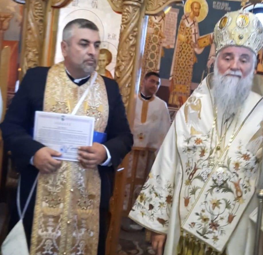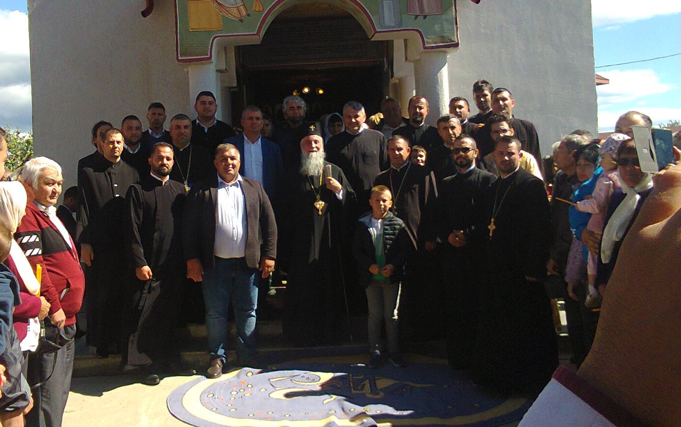 tale! Că, aşa cum spunem în Rugăciunea «Tatăl Nostru», «facă-se voia Ta!», dacă spunem cu tot dinadinsul aceste cuvinte, în mod sigur că Mântuitorul Hristos face din viaţa noastră un adevărat rai pe pământ! Aşa au fost sfinţii care i-au dăruit viaţa lui Dumnezeu şi au dobândit, în schimb, şi viaţa aceasta, dar şi viaţa veşnică! Sunt nenumărate modele de sfinţi pentru fiecare dintre noi şi putem să-i urmăm întotdeauna! Că zice Mântuitorul Hristos: «dacă cineva va dori ca să dobândească viaţa aceasta, o va pierde, iar, dacă cineva pierde viaţa aceasta pentru mine şi pentru Evanghelie, acela o va câştiga»! Vrea să spună că dacă ne îngrijim de viaţa aceasta, în mod sigur, vom muri cândva! De multe ori, ne chinuim aici să facem case, să adunăm avere, iar, toate acestea, poate vor rămâne la nişte oameni care nu ne-au iubit niciodată! Aşadar, a ne lepăda de lucrurile acestea şi a veni la biserică, înseamnă să ne construim o viaţă frumoasă şi binecuvântată de Dumnezeu, o viaţă plăcută Mântuitorului Iisus Hristos, care ne va binecuvânta atunci când vom trece din viaţa aceasta, că ne spuneDomnul: «veniţi la mine, binecuvântaţii Tatălui meu, de moşteniţi Împărăţia cerurilor»! Pe cei care îi va binecuvânta Mântuitorul Hristos, acelora le va da ca să moştenească viaţa veşnică! Aşadar, biserica este locul răsplătirii, este locul dăruirii, este locul hranei noastre duhovniceşti! De aici primim hrană de la Tatăl Cel ceresc, că aşa ne spune Sfânta Scriptură: «Hrană poporului său, Domnul va da şi va binecuvânta poporul său cu pace»! Deci, Evanghelia de astăzi, care este aşezată după Sărbătoarea Sfintei Cruci, ne îndeamnă pe fiecare dintre noi să cugetăm, să privim cu atenţie la Sfânta Cruce, să ne închinăm întotdeauna şi să-L preamărim pe Dumnezeu în viaţa noastră, să nu uităm niciodată că trebuie să biruim cu Sfânta Cruce toate poftele acestea lumeşti şi trecătoare! Numai culegând aceste vlăstare curate în viaţa noastră, putem să aducem un dar pentru bogăţia Lui Dumnezeu! Deci, în primul rând, cei care s-au ostenit pentru construirea acestei sfinte biserici, vor afla răsplată în ceruri! Că zicem la rugăciune: «Binecuvintează, Doamne, pe cei ce iubesc frumuseţea Casei Tale»! Aşadar, cei care au înfrumuseţat această sfântă biserică, Dumnezeu îi va răsplăti şi le va da cele folositoare în locul celor pământeşti! Şi dumneavoastră, cei care aţi venit la Sfânta Liturghie şi aţi luat parte cu atenţie la sfânta slujbă, veţi primi răsplată de la Cel ceresc, pentru că El este milostiv şi iubitor de oameni, pentru că El nu rămâne niciodată dator nouă! Să nu-i uităm pe cei care au contribuit la această frumoasă zidire! De aceea, ne rugăm Bunului Dumnezeu să le dăruiască, în locul celor pământeşti, cele cereşti! Îi felicităm pe toţi şi Dumnezeu să vă dea sănătate şi multă bucurie de la Mântuitorul Iisus Hristos! Amin”!
