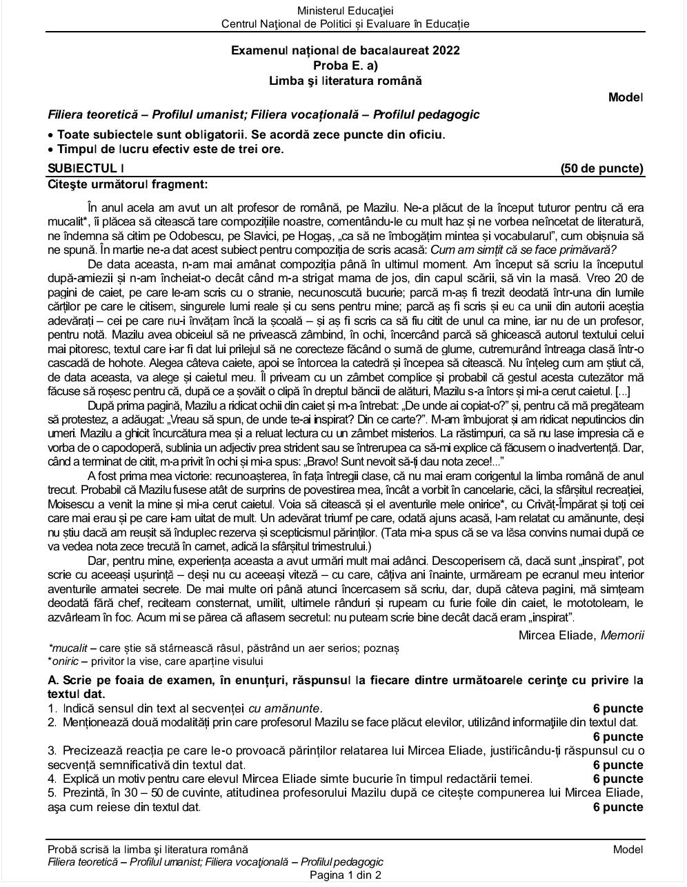 Ministerul Educației a publicat primele modele de subiecte pentru Bacalaureat 2022 și Evaluarea Națională 2022. Acestea sunt disponibile pe site-ul subiecte.edu.ro.