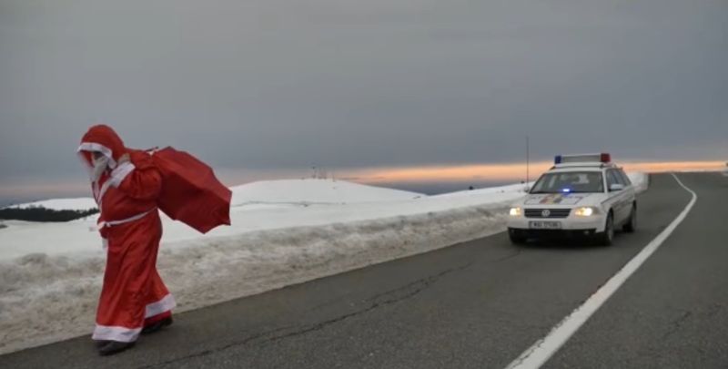 Polițiștii gorjeni au ales o metodă inedită prin care să arate că se află mereu la datorie, realizând un clip video, în zona montană Rânca. Potrivit scenariului, fostul purtător de cuvânt, Lucian Stroe, coordonatorul acțiunilor pentru combaterea principalelor cauze generatoare de accidente rutiere, în cadrul SPR Gorj, l-a întâlnit pe Moș Crăciun și s-a oferit să-l transporte în satul din apropiere, pentru a împărți cadourile. Imaginile au fost postate de reprezentanții Poliției Române pe pagina de Facebook a instituției. Sute de persoane au apreciat și distribuit clipul pe rețelele de socializare.