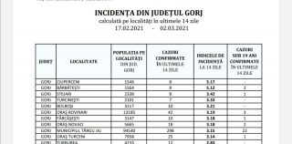 Municipiul Târgu-Jiu a intrat de astăzi pe lista localităților din Gorj ce fac parte din scenariul roșu. Reședința de județ înregistrează un indice de infectare cu COVID-19 de 3,15 la mia de locuitori.