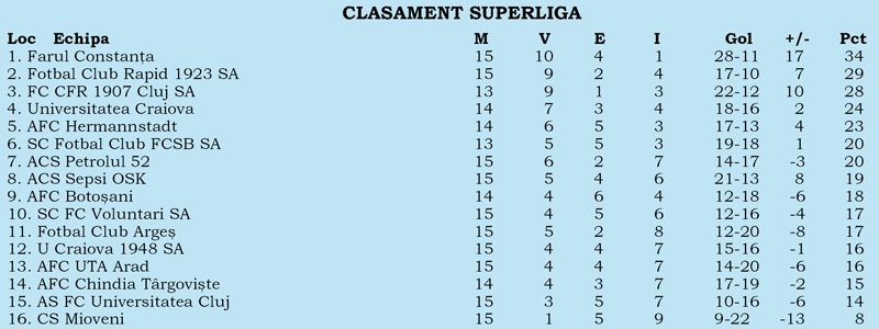 Denis Alibec (Farul / 31 de ani) – A înscris pentru întâia oară în carieră în poarta giuleştenilor, Rapid fiind a 25-a echipă care a primit cel puţin un gol în Superliga României de la actualul vârf al Farului.