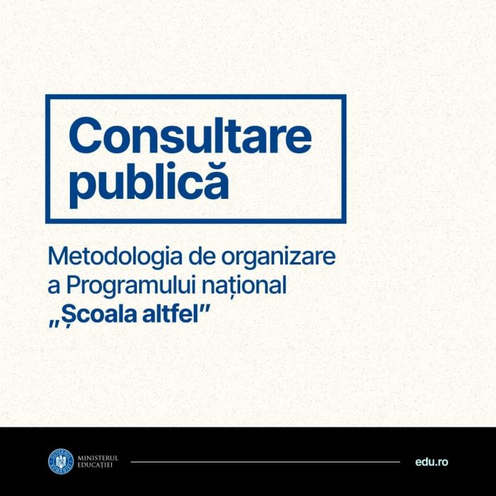 Ministerul Educației anunță faptul că a fost pusă în consultare publică Metodologia de organizare a Programului național „Școala altfel”.