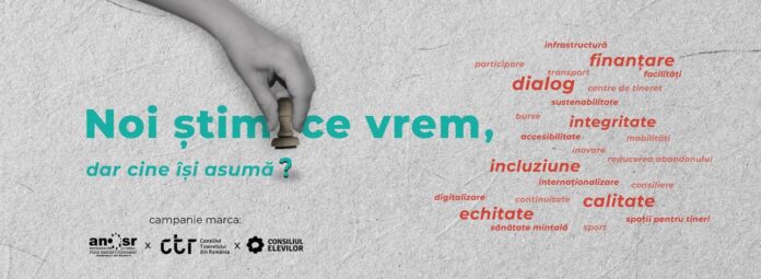 Alianța Națională a Organizațiilor Studențești din România, Consiliul Tineretului din România și Consiliul Național al Elevilor au lansat ieri campania „Noi știm ce vrem, dar cine își asumă?”. Demersul are rolul de a aduce în atenția candidaților la alegerile parlamentare și prezidențiale din acest an nevoile și dezideratele elevilor, studenților și tinerilor, astfel încât asumările viitorilor aleși să fie construite pe baza solicitărilor beneficiarilor sistemului educațional din România și ale tinerilor.