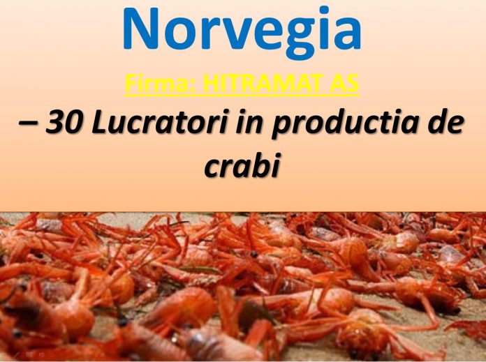 AJOFM Gorj informează că noi oferte de lucru în străinătate au fost publicate prin intermediul platformei EURES România. Cea mai recentă vine din Norvegia unde o firmă din localitatea Hitra caută 30 de lucrători în producția de crabi.