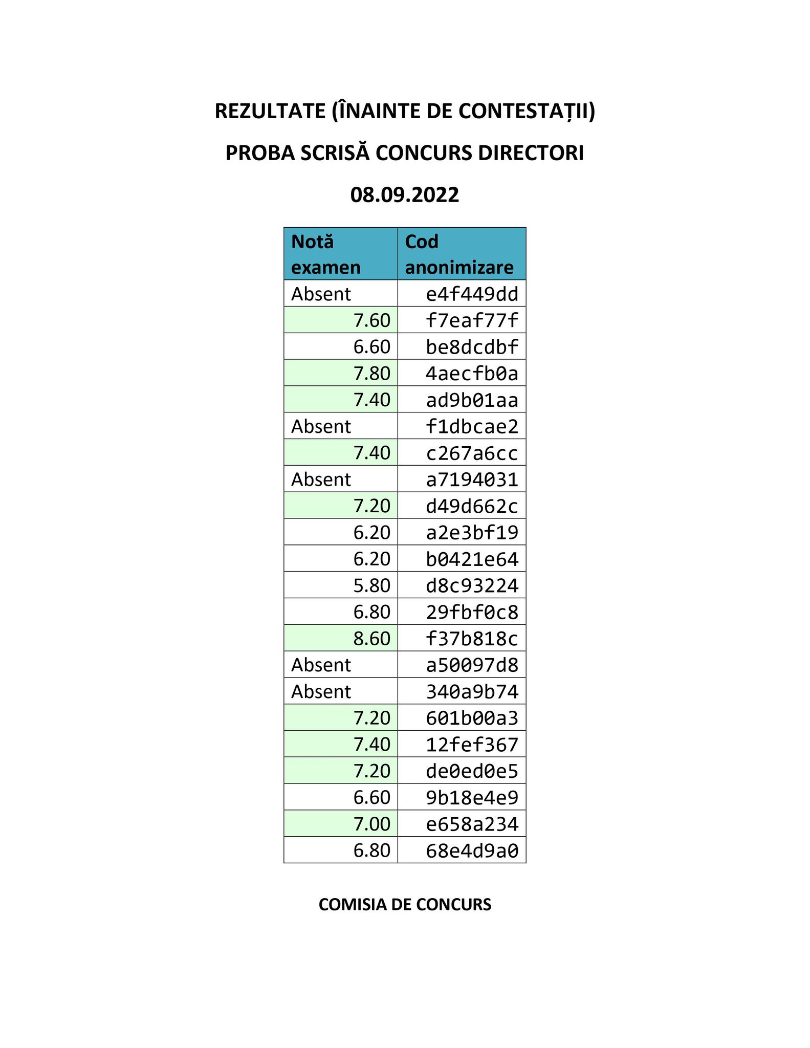 Notele obținute de candidați la concursul pentru funcțiile de directori de școli