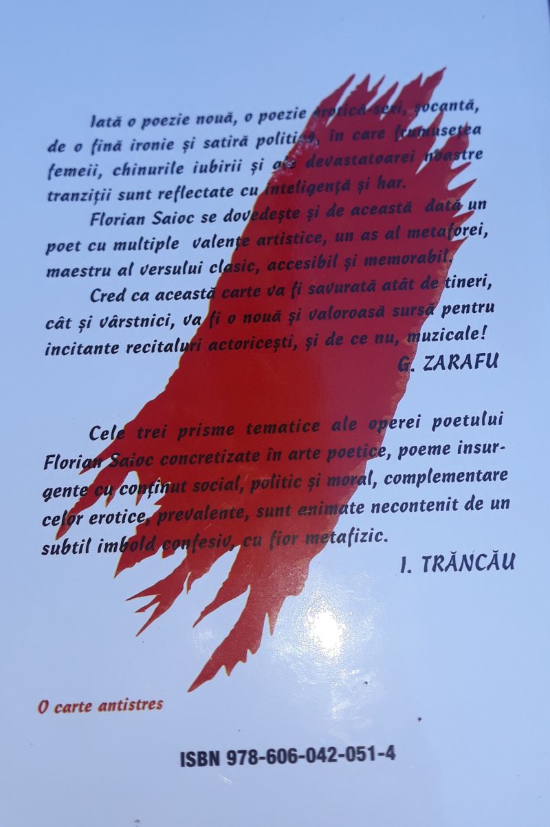 P.S. Incitant şi contaminant este acest post-scriptium, procedeu compozițional complementar, pe care Florian Saioc îl utilizează în unele recente poeme. L-am folosit, la finalul comentariului critic, precizând că poetul Florian Saioc este exclusiv poetul, Numai poetul, potrivit titlului dat de Eminescu unei arte poetice rămase printre postume. El nu este însă doar…Poetul amorez. Subscriem concluziei de pe coperta 4 a cărții sale cu un titlu reiterat, apărută la Editura Măiastra din Târg-Jiu, din anul 2020, el fiind, deopotrivă, un poet tribun, patriot, militant, mesianic și insurgent, animat de profund fior metafizic, inconfundabil în peisajul poeziei noastre contemporane, postbelice și postdecembriste. Catrenul final din poezia Poetul sintetizează admirabil și sugestiv, polivalența acestui crez artistic exemplar: dacă-l vedeți că umblă printre vetre,/ că murmură ceva și se închină,/ zvârlind în el cu pietre – acele pietre/ le veți găsi mânjite de lumină.