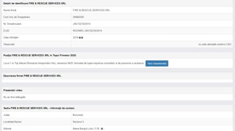 buna funcționare a echipamentelor de protecție la incendiu din mai multe instituții publice și private de interes național, însă făcea fictiv aceste controale. Polițiștii au făcut, de altfel, pe 15 aprilie, peste 200 de percheziții în Capitală și în mai multe județe din țară, în acest dosar. Conform unei informări a poliției, începând din 2019, angajații acestei firme care avea ca obiect principal de activitate ,,activități de luptă împotriva incendiilor și de prevenire a acestora”, trebuie să asigure buna funcționare a echipamentelor de protecție din instituții – extinctoare, hidranți, dar, de fapt, nu făceau aceste verificări. Astfel s-ar fi înlocuit sigilii, etichete de conformitate și de valabilitate. La momentul perchezițiilor aveau contract cu firma din sectorul trei: ISU, Penitenciarul Gherla, Penitenciarul Craiova, Spitalul Județean de Urgență Giurgiu, Spitalul Novaci, Spitalul de Urgență Roman, Spitalul Municipal Caracal, Spitalul Județean de Urgență Slatina, Aeroportul Ștefan cel Mare Suceava, Primăria Orașului Gataia, RATBV (Brașov). Spitalul municipal Gherla. Compania de Transport Public Cluj, CT BuS SA (Constanța), Radet Constanța, se aflau, de asemenea, pe lista clienților firmei. În capitală, aveau contracte de securitate la incendii Spitalul Marie Curie, Spitalul de boli cronice SF. Luca, Tarom. Au mai avut contracte Compania Națională de Căi Ferate CFR SA, Societatea Națională de Transport Feroviar CFR Călători SA, Grup Exploatare și Întreținere Palat CFR SA, Compania Națională de Administrare a Infrastructurii Rutiere SA, Societatea Națională Nuclear Electrica SA, Compania Națională de Transport a Energiei Electrice în Hidrocentrale Hidroelectrica SA, Regia Națională a Pădurilor Romsilva SA, Apa Nova Sa, Regia Autonomă de distribuție a Energiei Termice Radet SA, Compania Muncipală Energetica București SA, Compania Națională Loteria Română SA. Perchezițiile au avut loc pe 15 aprilie 2021, în urma unei anchete a polițiștilor Serviciului de Investigare a Criminalității Economice Mureș, sub coordonarea Direcției de Investigare a Criminalității Economice. Polițiștii au făcut nu mai puțin de 218 percheziții la peste 200 de adrese din București și din 28 de județe, în acest dosar, întocmit pentru infracțiuni de înșelăciune, evaziune fiscală și spălare a banilor. ,,Din cercetări a reieșit că o societate comercială din Capitală, care trebuia să asigure buna funcționare a echipamentelor de protecție la incendiu din mai multe instituții publice și private de interes național făcea fictiv aceste controale. Gravitatea este dată de amploarea actelor materiale care vizau inclusiv spitale, școli, unități militare, penitenciare, sedii ale unor instituții publice, stații de alimentare cu carburant, companii de transport public, companii de transport aeriene, companii de producere a energiei termice, electrice și nucleare, combinat chimic etc”, se arată într-un comunicat al poliției. Administratorii acestor instituții au fost induși în eroare cu privire la funcționalitatea și calitatea echipamentelor de stingere a incendiilor, fapt pentru care ar fi achitat sume considerabile pentru aceste servicii, potrivit Poliției. Totodată, pentru maximizarea profitului și evitarea taxelor datorate bugetului consolidat al statului, societatea, prin administratorul său, firma acuzată de înșelăciune, evaziune fiscală și spălare a banilor nu ar fi înregistrat totalitatea veniturilor realizate. Gradul de periculozitate al faptelor comise este foarte ridicat prin crearea unei stări de pericol cu privire la viața, sănătatea, și integritatea persoanelor, cât și cu privire la patrimoniul acestora, arată anchetatorii.