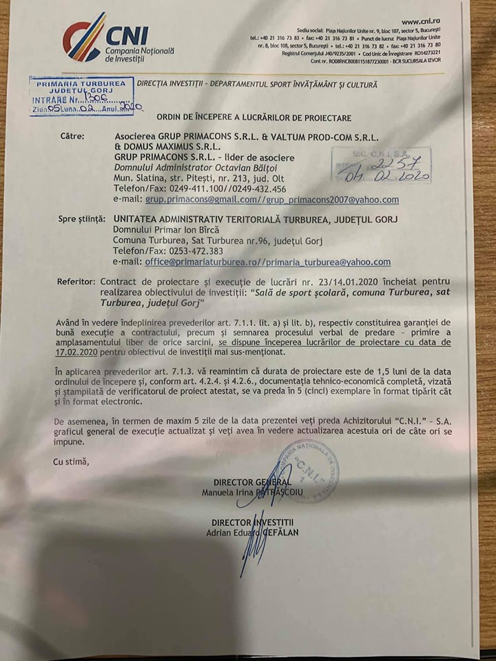 Firma afaceristului Octavian Bălțoi din Slatina a câștigat încă o lucrare în județul Gorj. Este vorba despre sala de sport școlară din comuna Turburea, lucrare în valoare de 6 milioane de lei.