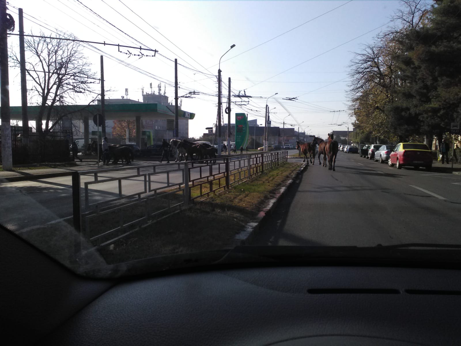 În urmă cu câteva minute, în zona Debarcader a municipiului și-a facut apariția o herghelie de cai, cabalinele 10-15 la număr blocând traficul pe mai multe străzi din zonă.