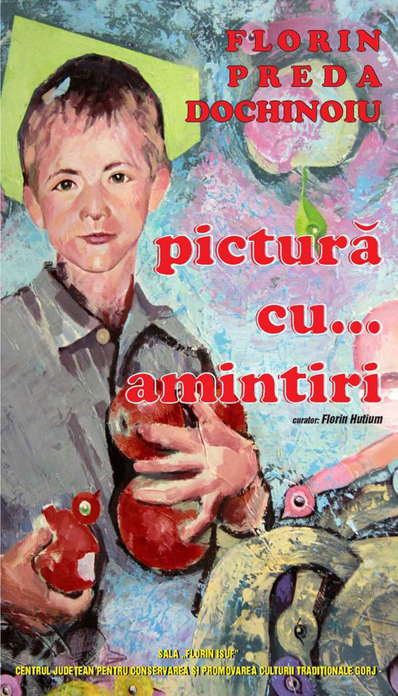 Florin Preda-Dochinoiu este inițiatorul „Salonului internațional de pictură Arte Mici” de la Motru, un eveniment care a crescut de la an la an și care a reușit să scoată la iveală talentul multor micuți. Prin expoziția ,,Pictură cu…amintiri”, artistul, după cum spune chiar el, dorește să le ofere tuturor ce vor vedea lucrările posibilitatea de a-i vizita amintirile. ,,Aș dori ca expoziția să deschidă o poartă către sufletul fiecărui gorjean, iar amintirile mele să devină poveștile dumneavoastră. Vă rog, vizitați-mi amintirile! Între mine și culoare nu există granițe, ci doar iubire și sensibilitate. Culoarea, din sufletul meu, se amestecă cu veșnicia dumneavoastră!”, spune artistul. ,,Pictorul ne surprinde la fiecare expoziție prin tablouri pline de imagini suprarealiste, uneori naive, populare. Afirmat în ultimul deceniu ca unul din cei mai originali artiști din generația tânără, Dochinoiu este un grafician și pictor postmodernist talentat din Oltenia. Vă așteptăm să vedeți expoziția „PICTURĂ CU…AMINTIRI”, online pe pagina de Facebook a CJCPCT Gorj, sau chiar la sediul nostru în sala ,,Florin Isuf” lucrările fiind deja expuse”, au anunțat reprezentanții CJCPCT Gorj. Curatorul expoziției ,,Pictură cu…amintiri” este Florin Hutium.