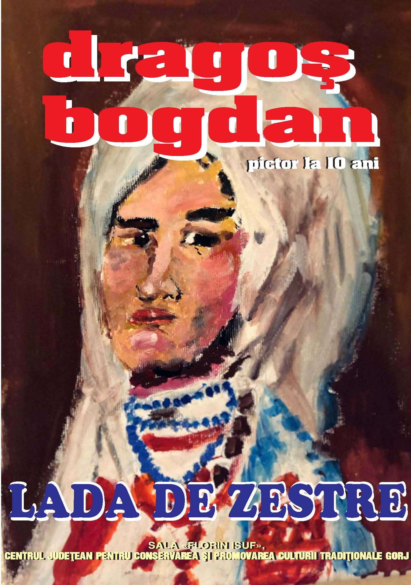 începând de astăzi, la sediul CJCPCT Gorj poate fi admirată o nouă expoziție de pictură semnată de Dragoș Bogdan, un băiețel de doar 10 ani, elev al Școlii Gimnaziale ”Ecaterina Teodoroiu” din Târgu-Jiu. Intitulată ”Lada de zestre”, expoziția poate fi văzută și online, pe pagina de facebook a Centrului Județean pentru Conservarea și Promovarea Culturii Tradițioanle Gorj.