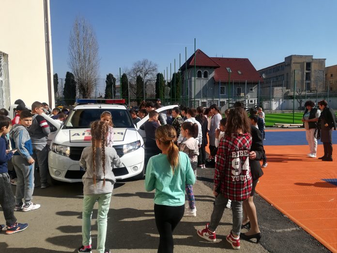 Oamenii legii, în mijlocul elevilor de la Şcoala Gimnazială „Ecaterina Teodoroiu”, de Ziua Poliţiei