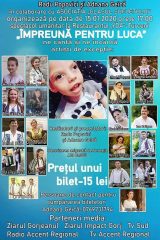De asemenea, pentru Luca se organizează, pe 15 ianuarie, la Turceni, un spectacol caritabil, intrarea fiind 15 lei, bani care vor ajunge la familia aceluiași copil.