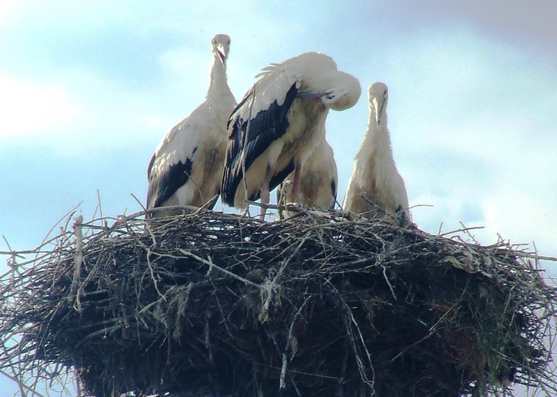 Trebuie să mărturisesc că aşa cum am fost în primăvară de-a binelea impresionat de jocul aripilor şi „toaca” din plisc a acestor simpatice păsări şi acum la sosirea în cuib în prezenţa puilor ce probabil cunoşteau ritualul adulţii au avut un program de-a dreptul mistic ce m-au dus cu gândul la şamanii amerindieni şi incantaţiile lor ancestrale.