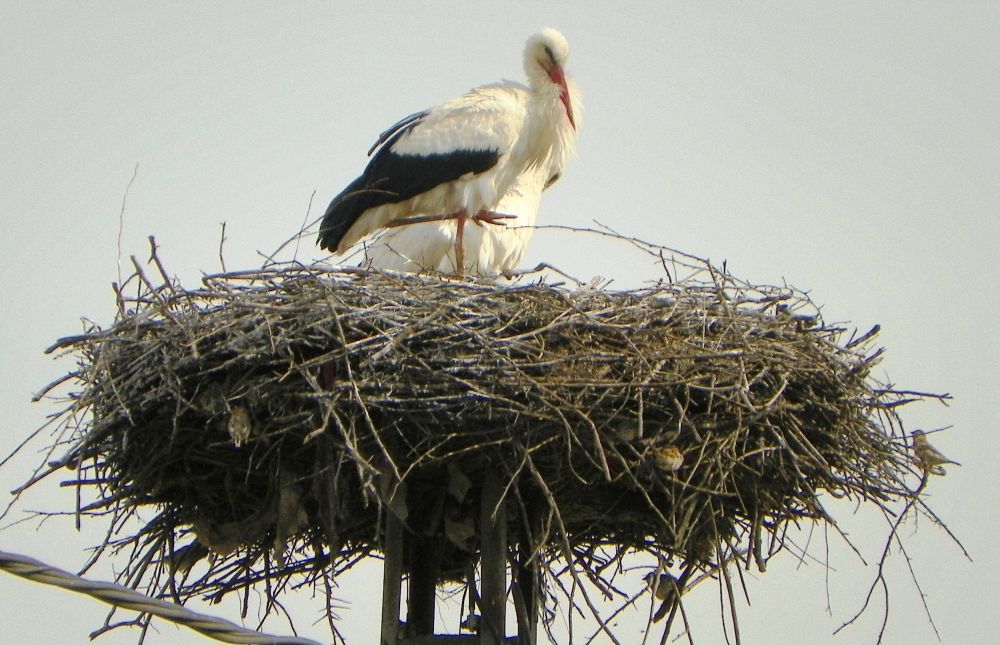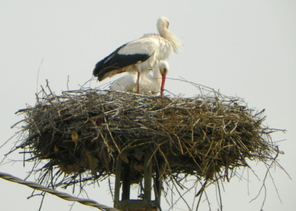 Ajuns la faţa locului, am constatat că o parte dintre berze veniseră deja, iar unele chiar începuseră să-şi repare cuiburile; iar altele, mai harnice, chiar să-şi clocească ouăle. Localnicii aflaţi la faţa locului mi-au povestit că plecarea din toamna anului trecut s-a făcut după un fel de „adunare generală” când toate sau aproape toate s-au strâns şi, într-un cor de clămpănituri de-ale lor, au plecat împinse de instinctele lor ancestrale spre zonele unde să-şi petreacă anotimpul rece pentru ca, odată cu sosirea primăverii, să facă drumul înapoi spre cuiburile părăsite în toamnă.
