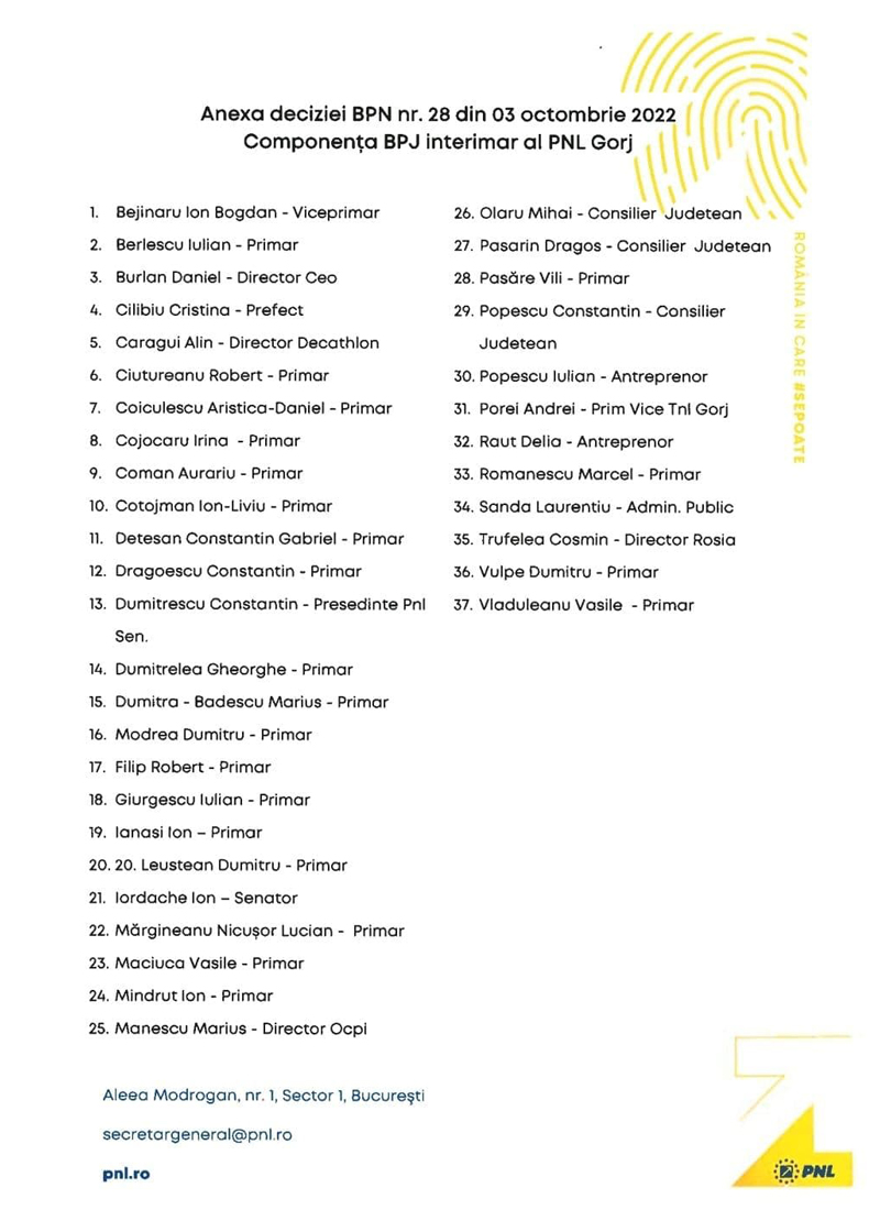 Oficial: Aceasta este componența BPJ-ului interimar al PNL Gorj! Cine va candida la președinția organizației, Cilibiu sau Iordache?!