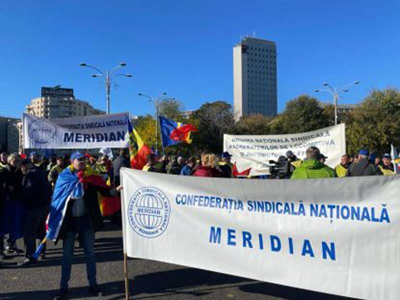 Confederația Națională Sindicală Meridian a organizat ieri un miting la care au participat mii de oameni din șapte domenii de activitate. La protestele de ieri au luat parte și reprezentanți ai federațiilor sindicale din Gorj și Hunedoara. La Târgu Jiu și Ișalnița minerii și energeticienii s-au solidarizat cu minerii din Valea Jiului.