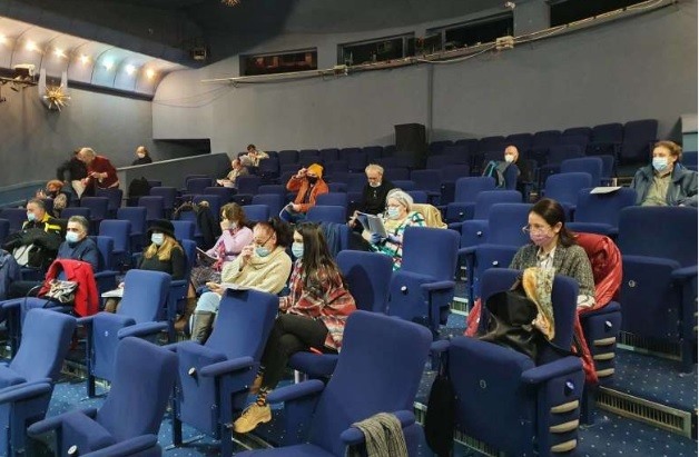 În foaierul teatrului, scriitorul și publicistul Miron Manega, născut la 27 iunie 1956, în Craiova, membru UZPR, a expus un stand de carte cu volumul de povestiri „Femeile din viața lui Brâncuși – iubiri transfigurate în opere de artă”, realizat în anul 2018, la Editura „Burebista” din București. Am fost și eu unul dintre cei care au intrat în posesia acestei frumoase colecții de povestiri.