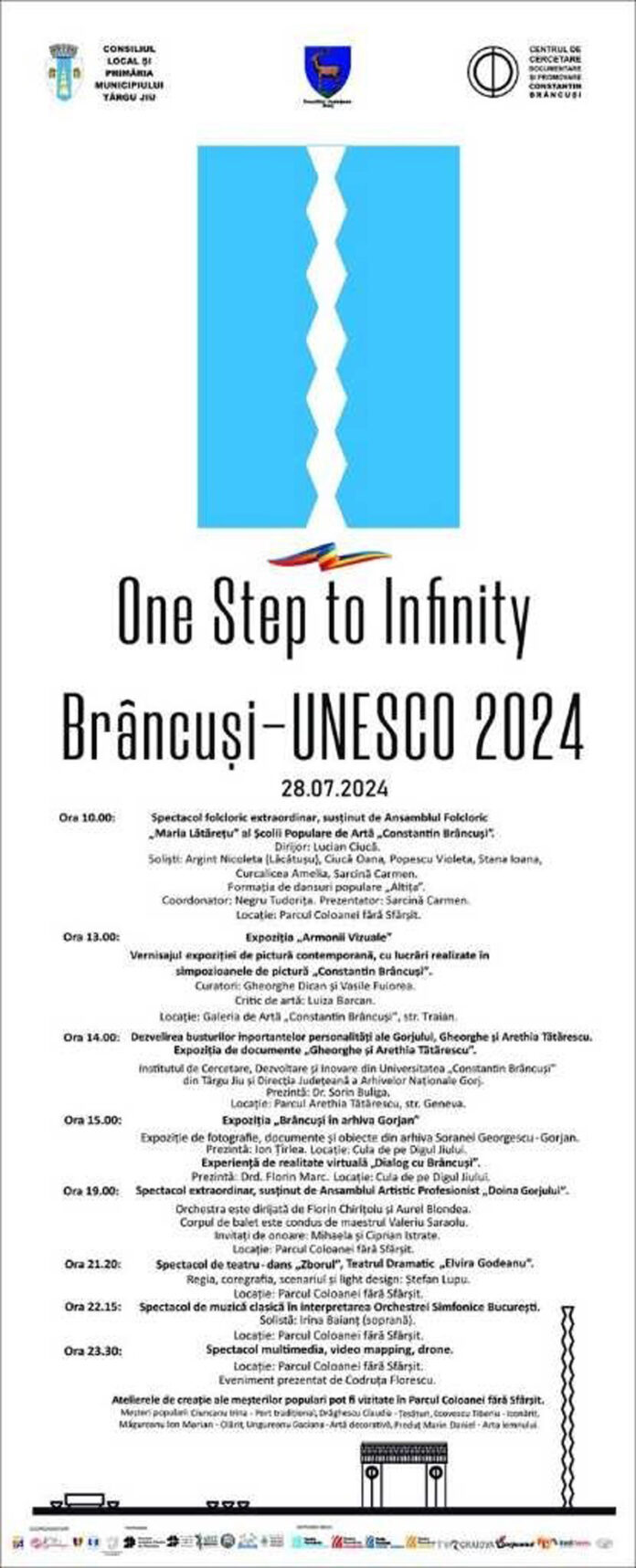 Pentru a onora acest eveniment de importanță națională, Consiliul Local și Primăria Municipiului Târgu Jiu, Consiliul Județean Gorj și Centrul de Cercetare, Documentare și Promovare „Constantin Brâncuși”, împreună cu numeroși parteneri, vor organiza manifestarea culturală „One Step to Infinity. Brâncuși – UNESCO 2024”, în data de 28 iulie, pentru a fi în acord cu decizia finală și anunțul oficial de înscriere a ansamblului sculptural pe lista Lista Patrimoniului Mondial UNESCO.