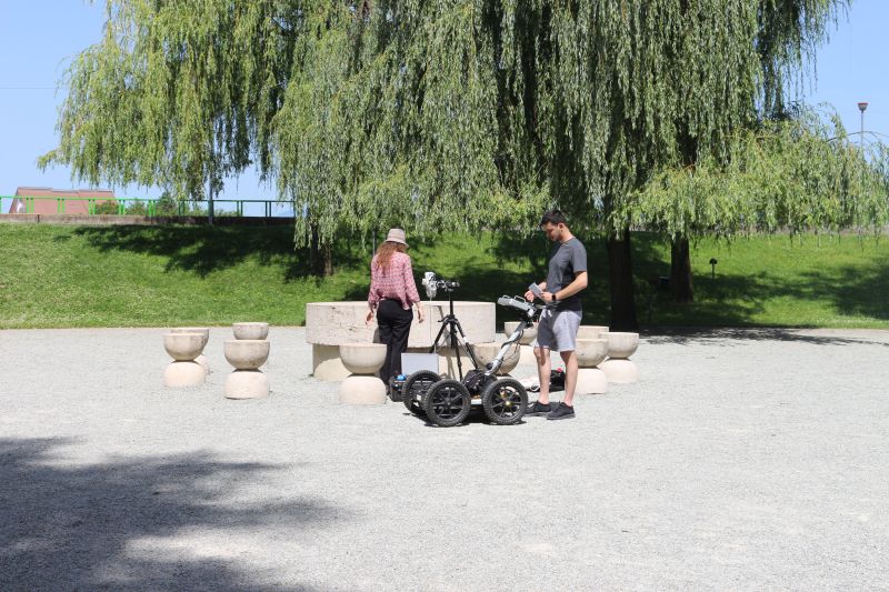 „Putem cu ajutorul acestui aparat să vedem ce se află în sol până la câțiva metri adâncime. Depinde de cum este orientată antena. Luni am fost la operele din piatră, acum am venit la Coloană și urmează să revin la cele din piatră în următoarele zile. De exemplu, în jurul Coloanei aparatul ne-a arătat fundația de la baza acesteia și structura solului. Sunt interesante aceste amănunte pentru că știu că există povești despre cum s-a încercat în trecut să fie dărâmată. Este o structură rezistentă”, a declarat tânărul specialist, venit din Capitală la Târgu-Jiu.Toți cercetătorii sunt tineri entuziasmați că pot folosi aici tehnici și aparatură modernă pentru a afla în ce stare se află operele. Șefa lor, Roxana Rădvan, spune că tehnicile respective sunt noninvazive, ceea ce este un avantaj uriaș față de anii trecuți. „Nu sunt analize întâmplătoare. Răspund întrebărilor pe care le primim de la arhitecți, geologi, restauratori. Trebuie să oferim soluții după ce înțelegem problemele. E o echipă tânără și inovativă. Toți sunt bine pregătiți, care au lucrat în diverse siteuri din lume. Aparatura pe care o folosim este rară nu doar pentru România, ci pentru Europa de Est. Ne oferă independență și informații importante.