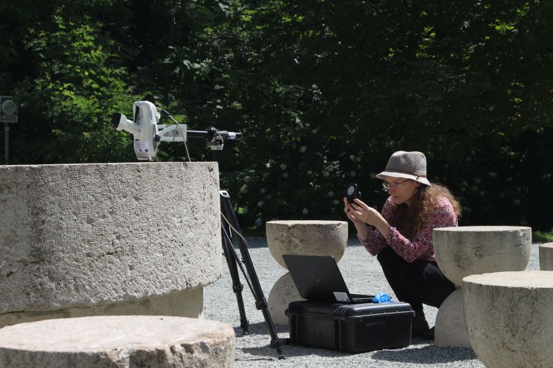 Sunt tehnici care operează în cea mai mare măsură noninvaziv sau contactul este minim. Este bucuria noastră de a lucra cu tehnici optoelectronice care ne oferă șansa de a colecta informații prin metode precise. Raza laser ne ajută de fiecare dată să strângem aceste informații extrem de precise”, a menționat reprezentanta Institutului Național de Optoelectronică.Toate informațiile de acum vor fi corelate cu cele strânse la expertizele din anii anteriori și așa se va putea întocmi până în toamnă un proiect menit să ajute autoritățile să întrețină și să conserve cât mai bine operele de la Târgu-Jiu. Șeful Centrului „Constantin Brâncuși”, Doru Strâmbulescu, dă asigurări că la începutul toamnei la operele din cele două parcuri vor fi făcute lucrări de conservare menite să le ajute să treacă mai ușor peste perioada de iarnă. „Monitorizarea o face o echipă complexă de specialiști. În baza acestui program vom avea o schemă de lucru atât pentru operele din piatră, cât și Coloana. Se lucrează la proiectul de protecție și gestiune a monumentelor, necesar pentru includerea operelor în patrimoniul UNESCO. Spre toamnă sper să fie finalizat proiectul de conservare, restaurare, prin care operele să fie conservate și restaurate acolo unde e cazul. Avem pentru această toamnă un proiect de intervenție de urgență pentru operele din piatră. Cred că în iarnă le vom vedea în bună stare”, a menționat Doru Strâmbulescu. Lucrările de monitorizare a operelor se vor încheia la sfârșitul săptămânii, după care specialiștii se vor retrage de pe teren în birouri pentru a pune cap la cap informațiile obținute în această perioadă la Târgu-Jiu.