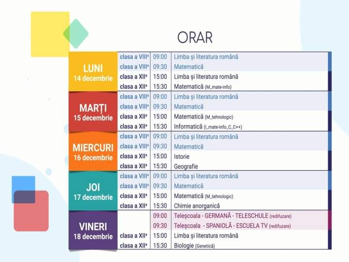 Lecțiile pot fi urmărite în direct, de la orele 9.00 și 15.00, de luni până vineri, pe TVR 2, dar și ulterior, înregistrate, în funcție de programul fiecăruia, pe următoarele canale/platforme: TVR+, YouTube #TVR, Telescoala TVR și tvr.ro.
