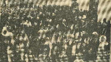 „La 14 aprilie 1935 s-a făcut sfinţirea drapelului de către Centrul Pastoral Regional format din 14 preoţi, precum şi o grandioasă manifestare patriotică. De la Bucureşti a participat secretarul general al Ligii, Gheorghe Lungulescu, iar din Târgu-Jiu a venit preşedintele secţiei judeţene, avocat Miron Constantinescu. Tot ceea ce Valea Gilortului a avut mai select şi conştient a luat parte în fruntea a sute de săteni şi sătence, veniţi din toate satele vecine. Muzica militară a Regimentului 18 Infanterie Gorj, cuvântările înflăcărate şi pline de avânt, corurile patriotice ale Căminului Cultural „Bibescu-Vodă” din Aninoasa, Gorj, ale tinerilor premilitari şi ale şcolilor primare din regiune au făcut să vibreze adâncul sufletesc şi să nască elan şi abnegaţie, ca dovadă a capacităţii de jertfă ale zilelor următoare dacă împrejurările vor cere. Manifestarea a avut aspect de înălţătoare sărbătoare, vrednică de admiraţia celor veniţi din nenumărate părţi ale judeţului şi ale delegaţiilor din Capitală. Toată mulţimea avea ochii umeziţi de lacrimi la amintirea sângelui vărsat în lupta de întregire a neamului, iar înflăcărarea participanţilor te duce cu gândul la rezistenţa eroică a gorjenilor în luptele de pe malul Jiului.