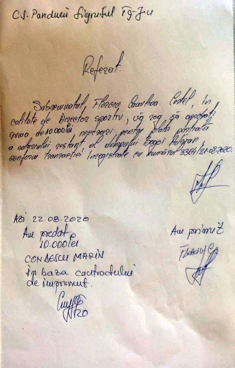 Fostul antrenor al Pandurilor, Adrian Bogoi, acuză conducerea echipei de fotbal că i-a falsificat semnătura pentru a putea lua licența. Controversele în care este implicat clubul gorjean nu se mai termină, iar memoriul depus la Federația Română de Fotbal de către tehnician completează episoadele dramatice din viața fostei divizionare A. Informația a apărut în Gazeta Sporturilor, unde Bogoi a susținut că nu știa nimic de acordul de reeșalonare a datoriilor către el, prezentat de club la Comisia de Recurs, document pe baza căruia gruparea gorjeană a obținut dreptul de a evolua în liga secundă. Documentele sunt acum analizate de federali, iar dacă Bogoi are dreptate, Pandurii ar putea fi retrogradată în Liga 3.„Într-adevăr a fost comunicat către FRF un înscris prin care domnul Bogoi Adrian Laurențiu contestă semnătura sa pe documentul intitulat ,Tranzacție’ și prezentat de către clubul CS Pandurii Lignitul Târgu Jiu în fața organismelor jurisdicționale ale FRF. În temeiul acestui înscris, FRF a decis să formuleze cerere de revizuire a hotărârii pronunțate de Comisia de Recurs a FRF. În încheiere, având în vedere că cererea de revizuire formulată de FRF este pe rolul organismului jurisdicțional competent nu putem oferi niciun fel de detalii cu privire la modalitățile în care dosarul respectiv poate fi soluționat de către comisiile FRF”, a fost reacția forului autohton.Bogoi spune că are restanțe salariale pe o perioadă de doi ani.,,Atunci când se apropia termenul pentru licențiere, au început să mă caute. Au venit și au stat și pe la mine pe la poartă, să mă convingă să semnez un act de reeșalonare a datoriei către mine. Le-am spus că nici nu vreau să aud. Iar acum am văzut ce document au depus la Comisia de Apel de Licențiere. Eu nu am semnat niciodată un asemenea act! Semnătura seamănă cu a mea, dar, repet, nu eu am semnat! Am precizat toate astea la FRF într-o declarație oficială. Eu nu vreau să le fac rău celor de la Pandurii, dar nu se mai poate, vreau să îmi dea banii pentru care am muncit! Din punctul meu de vedere ce au făcut ei e fals și uz de fals. În acel act se obligau să îmi achite tot în termen de 5 zile de la obținerea licenței. Au trecut trei săptămâni și nici asta n-au făcut. Aștept și eu să văd cum se vor rezolva lucrurile”, a declarat Bogoi pentru gsp.ro.În schimb, fostul președinte al Pandurilor, Marin Condescu, susține că a împrumutat clubul tocmai pentru a stinge litigiul cu Bogoi. „Deși nu mai am nicio funcție oficială în club, am avut o discuție cu Bogoi. El a făcut o treabă foarte bună aici. Mi-a spus că e de acord cu reeșalonarea datoriilor dacă i se dă o parte de bani. De aceea, eu am împrumutat clubul cu 10.000 de lei, bani care i-au fost virați lui Bogoi. Dacă spune că nu a semnat acel acord, de ce nu a refuzat acei bani?”, a declarat Condescu.