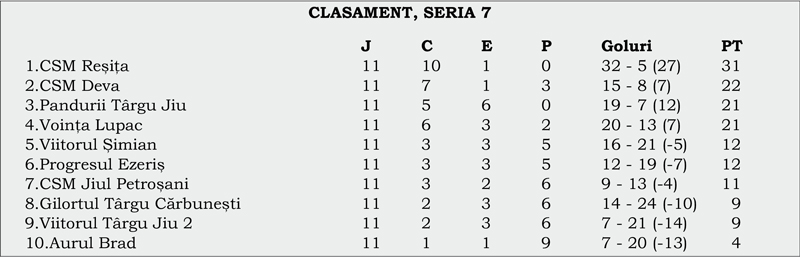 Mario Găman nu a reuşit să ghideze Pandurii către primul succes din retur. Antrenorul gorjean a bifat al doilea rezultat de egalitate de când a preluat banca tehnică a formaţiei alb-albastre. Şi meciul cu Progresul Ezeriş s-a încheiat cu același scor, 1-1, după un final frustrant. Prima partea a jocului a oferit puţin fotbal. Gazdele s-au aflat în control, dar cărăşenii puteau deschide scorul în minutul 29, prin Călin. Ovidiu Rasoveanu a avut şansa să-i ducă pe amfitrioni în avantaj înainte de pauză, dar pătrunderea sa nu s-a concretizat cu gol. Acelaşi Rasoveanu a fost protagonistul unei faze controversare în minutul 53, când a fost faultat de ultimul apărător al oaspeților, dar arbitra Alina Peşu a considerat că nu se impune cartonaşul roşu. Pandurii s-a instalat pentru restul reprizei în terenul advers, dar gorjenii au ratat prea mult. Mensah, Bebeto Lupuleţ, în două rânduri, şi Nichifor Georgescu au irosit oportunităţi uriaşe. A venit totuşi minutul 84 şi gazdele au răsuflat uşurate. Duijker, intrat foarte bine în locul lui Petre, a făcut faza golului din care Bebeto Lupuleţ a reuşit să înscrie. Pandurii s-au bucurat prea repede, iar defensiva noastră a adormit la un corner al Ezerişului, concretizat cu o reuşită a lui Giurică (90+2). Gorjenii trebuie să se trezească repede, pentru că au pierdut 4 puncte cu adversari consideraţi mult sub valoarea lor. Echipa rămâne neînvinsă în Seria 7, dar are cinci egaluri consecutive.