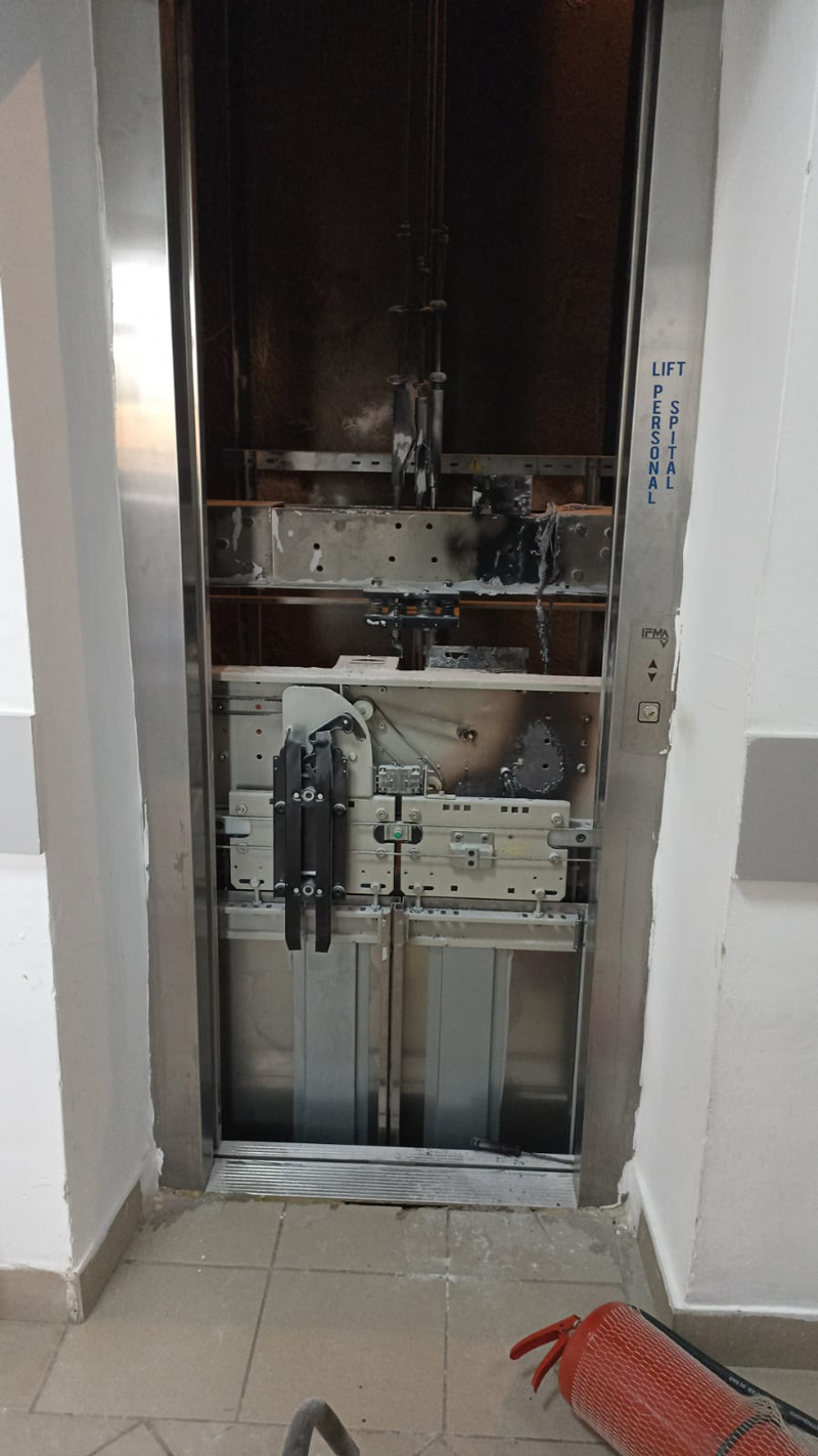 Zeci de pacienți au fost evacuați, ieri la prânz, din secțiile Chirurgie I și II ale Spitalului „Tudor Vladimirescu” din Târgu-Jiu, în urma unei degajări de fum la liftul de serviciu al unității medicale.