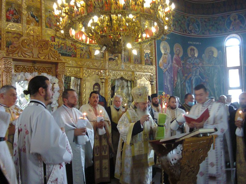 În cuvântul de aleasă preţuire pe care l-a rostit la slujba de înmormântare şi pe care îl redăm aproape în întregime, Înaltpreasfinţitul Teodosie, Arhiepiscopul Tomisului, cu o dragoste frăţească şi plină de elocinţă a spus următoarele: ,,Dumnezeu să te ierte, fiule duhovnicesc şi frate, Părinte Gheorghe, mutat de la noi, de tot ceea ce ai greşit ca un om în această viaţă, cu voie sau fără de voie! Slavă Ţie, Hristose, Dumnezeul nostru, nădejdea noastră, Slavă Ţie! Cel Înviat din morţi, Hristos Adevăratul Dumnezeul nostru, pentru rugăciunile Preacuratei Maicii Sale, ale Sfinţilor Părinţilor şi atotlăudaţilor Apostoli, cu ale preasfinţilor, preacuvioşilor de Dumnezeu purtătorilor părinţilor noştri, rugăciunile Sfântului şi dreptului Lazăr, care a patra zi a înviat din morţi şi pentru rugăciunile tuturor sfinţilor, întru ale adormitului Gheorghe, fratele nostru cel mutat de la noi, în corturile drepţilor să-l aştepte şi să-l odihnească! Dumnezeu să ne mântuiască şi să ne miluiască întotdeauna, ca un bun şi de oameni iubitor! Întoarce-te suflete, întru odihna ta! Mult îndurerată familie! Mult îndurerată soţie, îndureraţi fii, îndurerate nurori, îndureraţi nepoţi, preacucernici părinţi, întristată adunare! Conducem pe calea veşniciei un preot vrednic ce lasă în urma lui atât de frumoase înfăptuiri! Cea mai frumoasă înfăptuire este această biserică pentru care s-a ostenit atât de mult. El a fost cu adevărat un om înzestrat de Dumnezeu, iar aceasta a spus-o dascălul său pe care l-a avut îndrumător la Craiova, pentru că şi eu l-am avut îndrumător pentru doctorat, Părintele Prof. Constantin Corniţescu, pentru că el a fost şef de promoţie, un om cu adevărat şi în misiunea sa pastorală a fost un fruntaş! De aceea, îl conducem cu durere, dar şi cu nădejde, pentru că el, atunci când se va duce la judecată, va avea cu ce să meargă! Va zice, iată, copiii mei, i-am lăsat să slujească! Credincioşii săi au fost întăriţi prin cuvântul său, pe care l-a propovăduit: «Iată, biserică, Doamne, am zidit pentru numele Tău»! Am venit aici pentru că l-am avut ca pe un slujitor apropiat pe Părintele Ciprian, primul meu consilier, dar am venit mai ales pentru slujirea pe care Părintele Gheorghe a primit-o la Constanţa la spital! A fost îngrijitor faţă de cei bolnavi şi a avut grijă de ei! Am avut acolo mai mulţi slujitori, dar tot personalul mi-a spus că a fost singurul preot care toată ziua stătea în spital şi din salon în salon se ruga pentru bolnavi şi îi mângâia şi îi ajuta! De aceea, a fost un model de preot de parohie, dar şi de spital, pentru că preoţii de spital nu sunt chiar toţi cu o vocaţie specială pentru aceasta! Dar Părintele a avut o vocaţie ca să-i slujească pe cei bolnavi, pentru că avea optimismul său când îi mângâia pe cei bolnavi! De aceea, el a rămas o amintire atât de luminoasă! Am poposit aici renunţând la o mare sărbătoare cu hramul «Icoana Maicii Domnului» şi am venit în fugă şi plec în fugă, dar nu aş fi avut linişte dacă nu aş fi venit ca să fac rugăciuni, ca să exprim dragostea şi preţuirea Părintelui înaintea Lui Dumnezeu, iar Milostivul Dumnezeu să primească ostenelile mele! Înaltpreasfinţitul Irineu a binecuvântat ca să fiu aici, pentru care îi mulţumesc mult, pentru că între noi este o legătură foarte apropiată!