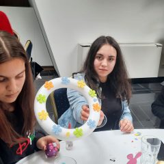 La finalul activității, copiii au ajuns la pizza ca apoi să facă decorațiuni de Paște cu Adriana Vasile, profesor de la Școala Populară de Artă.