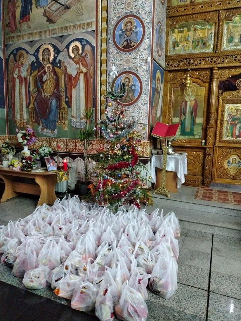 Familiile cu posibilități reduse din parohie au primit astfel, și de data asta, alimente, iar copiii vor primi în ziua praznicului Nașterii Domnului daruri din partea Moșului.