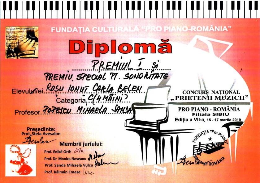 În perioada 15-17 martie, s-a desfășurat Festivalul-Concurs „Prietenii Muzicii” – filiala Sibiu, proiect național, organizat de Fundația culturală „Pro-Piano – România” și prezidat de distinsa doamnă profesoară, Stela Avesalon. Din textul oferit de organizatori reținem: „La nivel național, evenimentul este organizat de Fundaţia Culturală “PRO PIANO-ROMÂNIA”, care a fost înfiinţată în anul 1996, în Bucureşti. Potrivit statutului său, fundaţia are ca scop principal depistarea, educarea, selecționarea şi subvenţionarea elitei artistice, culturale, muzicale, prin şcolarizarea în învăţământ autorizat a persoanelor fizice de orice vârstă, precum şi prin sprijinirea şi promovarea tinerilor supradotaţi, a talentelor reprezentative pentru muzica vocală şi instrumentală laică şi religioasă, pe plan naţional şi internaţional. În anul 1997 a fost organizată prima ediție a Concursului Internațional de pian ,,Pro Piano – România, cu frecvență anuală. Preşedintele ei este Stela Avesalon, profesoară de pian gradul I, cu Gradaţie de Merit și Diplomă de Excelență conferit de Ministerul Învațământului, pentru întreaga activitate. Iniţiatoarea acestui festival la Sibiu este profesoara de pian Enik–Maria Orth, distinsă cu Medalia Meritul pentru Învăţământ clasa I”.